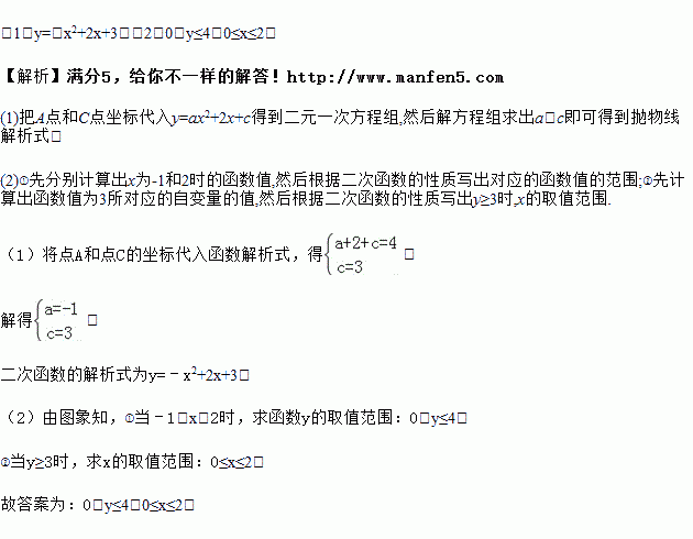 如图,已知二次函数y=ax2+2x+c图象经过点A (1,4)和点C (0,3).