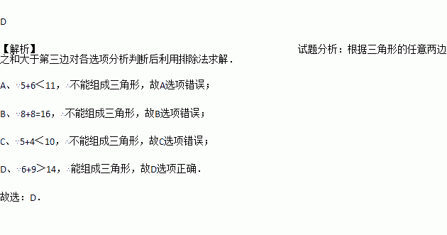 A. 5,11,6 B. 8,8,16 C. 10,5,4 D. 6,9,14