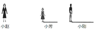 路灯下站着小赵,小芳,小刚三人,小芳和小刚的影长如图,确定图中路灯灯泡的位置,并画出小赵在灯光下的影