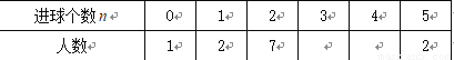 某班进行个人投篮比赛,下表记录了在规定时间内投进个球的人数分布情况: