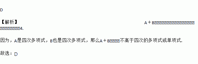 如果A是四次多项式,B也是四次多项式,那么A+B一定是( )
