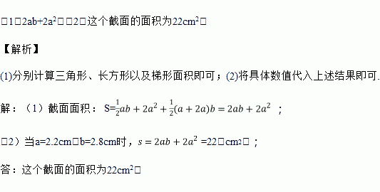 (2)当a=2.2cm,b=2.8cm时,求这个截面的面积.