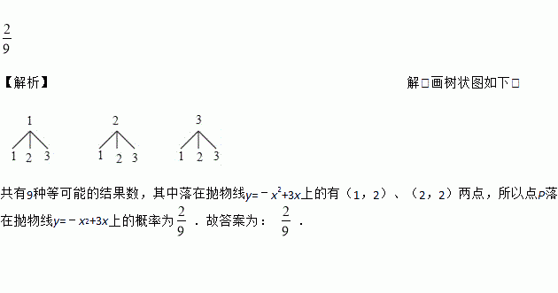 在一个不透明的盒子里,装有三个分别写有数字1,2,3的小球,它们的形状、大小、质地等完全相同,先从盒子里随机取出一个小球,记下数字后放回盒子,摇匀后再随机取出1个小球,记下数字,前后两次的数字分别记为x,y,并以此确定点P(x,y),那么点P在抛物线y=﹣x2+3x上的概率为_____.