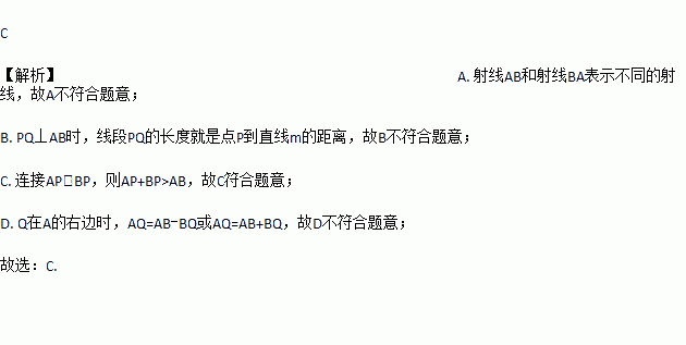 如图,点A,B在直线m上,点P在直线m外,点Q是直线m上异于点A,B的任意一点,则下列说法或结论正确的是( )