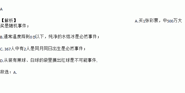 A. 买1张彩票,中500万大奖