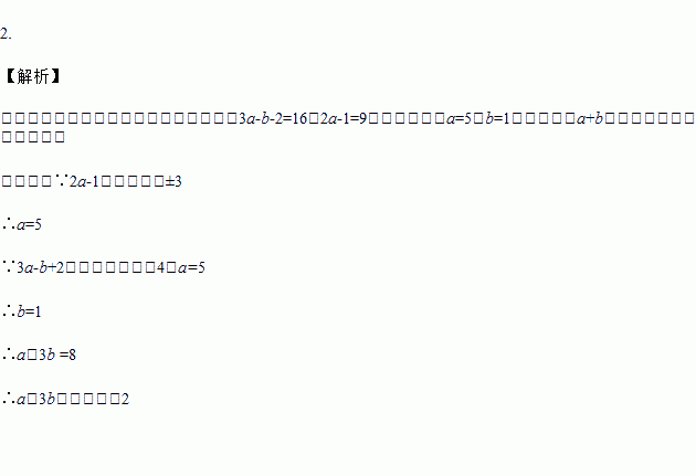 已知2a-1的平方根是±3,3a-b+2的算术平方根是4,求a+3b的立方根.