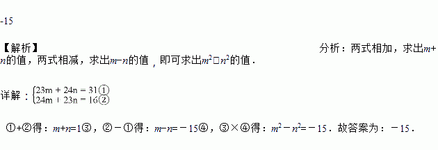 已知m、n满足 ,则m2-n2的值是_________.