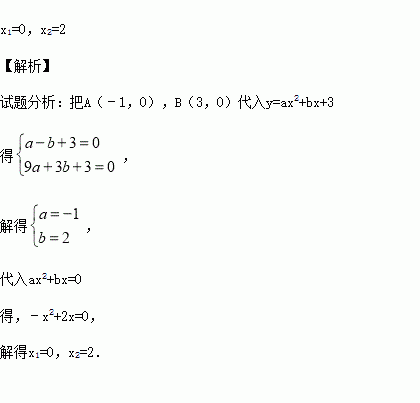 如图,二次函数y=ax2+bx+3的图象经过点A(﹣1,0),B(3,0),那么一元二次方程ax2+bx=0的根是 .