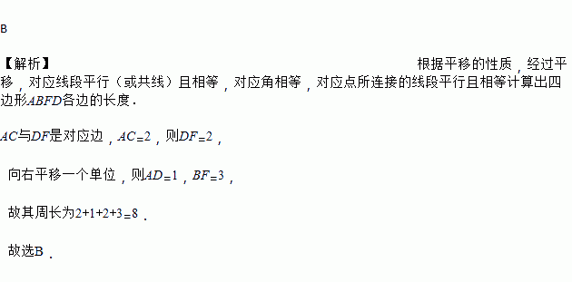 如图,将边长为2个单位的等边△ABC沿边BC向右平移1个单位得到△DEF,则四边形ABFD的周长为( )