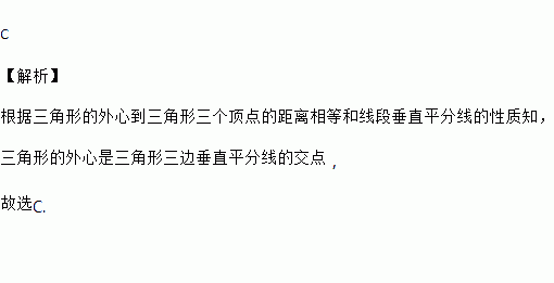 C. 三条边垂直平分线的交点 D. 三条角平分线的交点