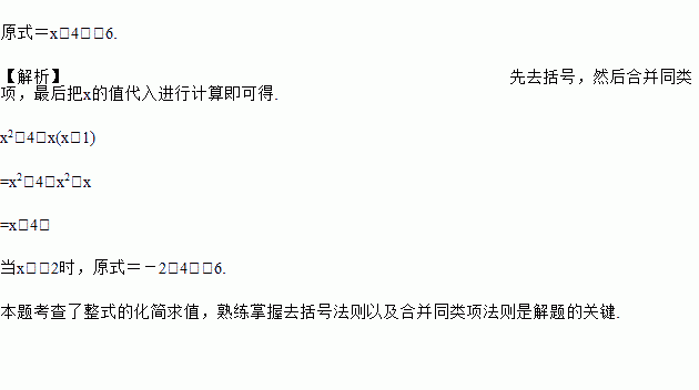 先化简,再求值: x2-4-x(x-1),其中x=-2.