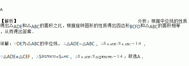 如图,把一张三角形纸片ABC沿中位线DE剪开后,在平面上将△ADE绕着点E顺时针旋转180°,点D到了点F的位置,则