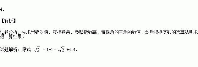 计算:|1﹣|+(π﹣2014)0﹣2sin45°+()﹣2.