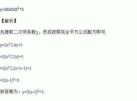 用配方法将二次函数y=2x2﹣4x+5化为y=a(x﹣h)2+k的形式是_____.