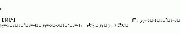 C 【解析】【解析】 y1=-5(-1+1)2+3=3, y2=-5(2+1)2+3=-42, y3=-5(-3+1)2+3=-17.故y2 < y3 < y1.故选C.