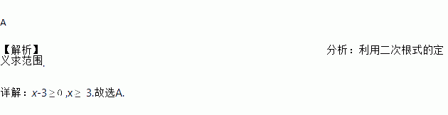 A. x≥3 B. x≥﹣3 C. x≠3 D. x>0且x≠3