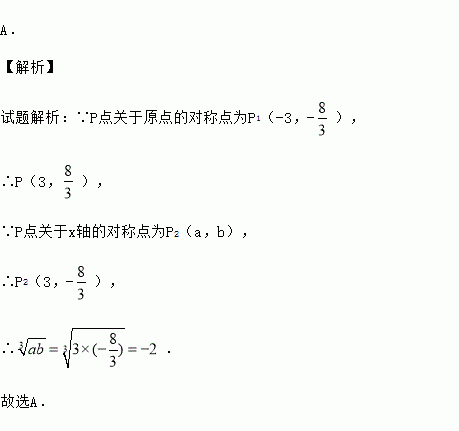 在平面直角坐标系中,P点关于原点的对称点为P1(-3,-