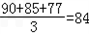 B的三项测试的平均成绩为: