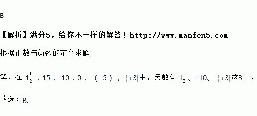 在﹣1,15,﹣10,0,﹣(﹣5),﹣|+3|中,负数的个数有( )