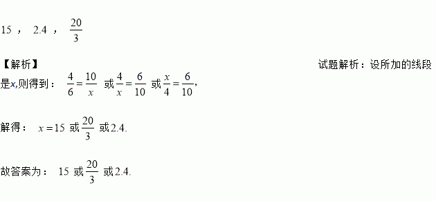 已知三条线段的长分别是, 和,则再加一条__________ 的线段,才能使之四条线段成比例.
