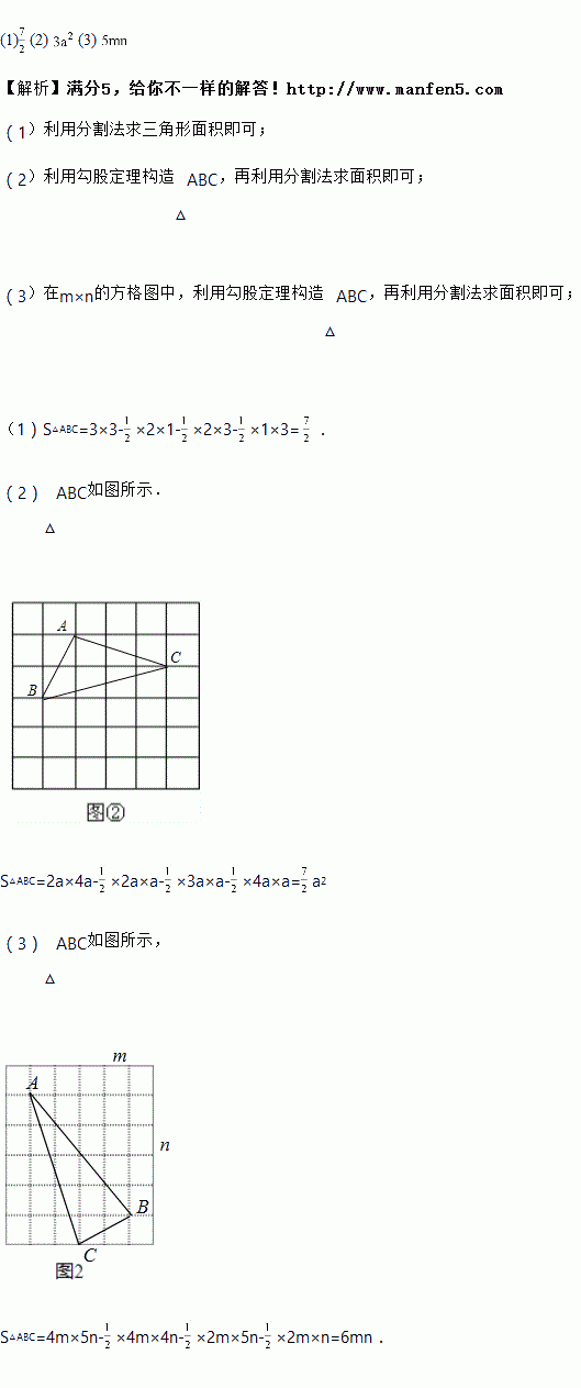 (m>0,n>0,且m≠n),试运用构图法(自己重新设计一个符合结构特征的网格)求出这个三角形的面积.