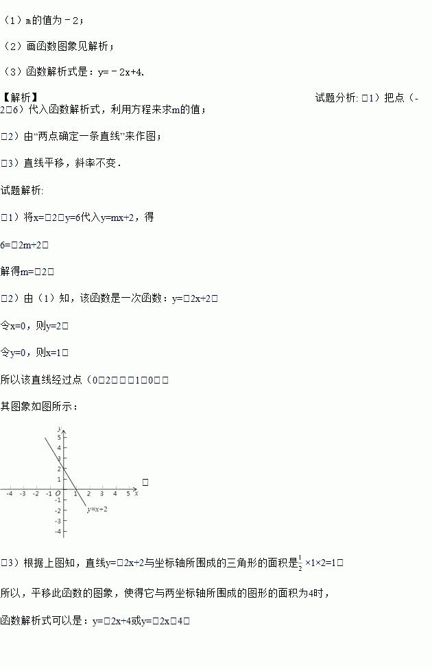 已知关于x的一次函数y=mx+2的图象经过点(﹣2,6).