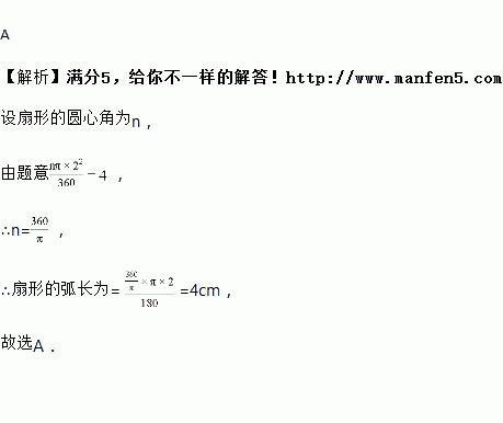 如图所示,左边的正方形与右边的扇形面积相等,扇形的半径和正方形的边长都是2cm,则此扇形的弧长为( )cm.