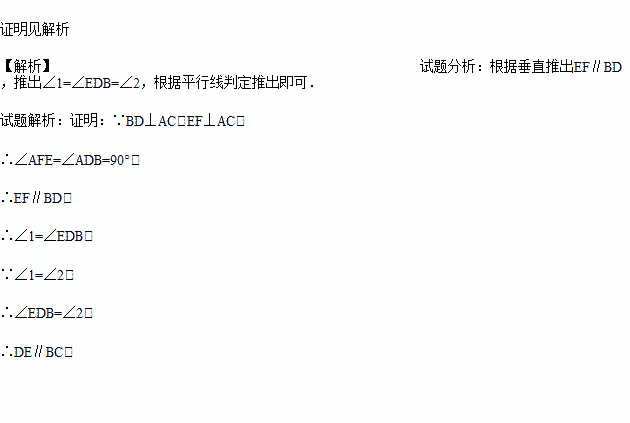 已知:如图,在△ABC中,BD⊥AC,EF⊥AC,垂足分别为D、F,∠1=∠2.