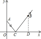 分析:首先过点B作BD⊥x轴于D,由A(0,2),B(4,3),即可得OA=2,BD=3,OD=4,由题意易证得△AOC∽△BDC,根据相似三角形的对应边成比例,即可得OA:BD=OC:DC=AC:BC=2:3,又由勾股定理即可求得这束光从点A到点B所经过的路径的长.