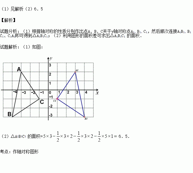(1)画出△ABC关于y轴对称的△A1B1C1;