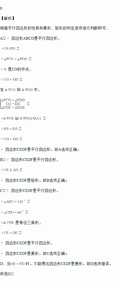 是CD的中点,E是边AD上的动点,EG的延长线与BC的延长线交于点F,连结CE,DF,下列说法不正确的是![]()