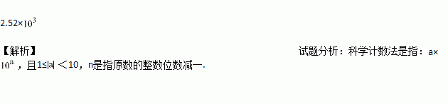 我国是世界上13个贫水国之一,人均水资源占有量只有2520立方米,用科学记数法表示2520立方米是_______立方米.