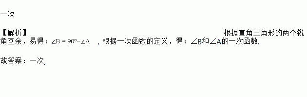 直角三角形两个锐角∠A和∠B的函数关系是____函数.(填“正比例”或“一次”)