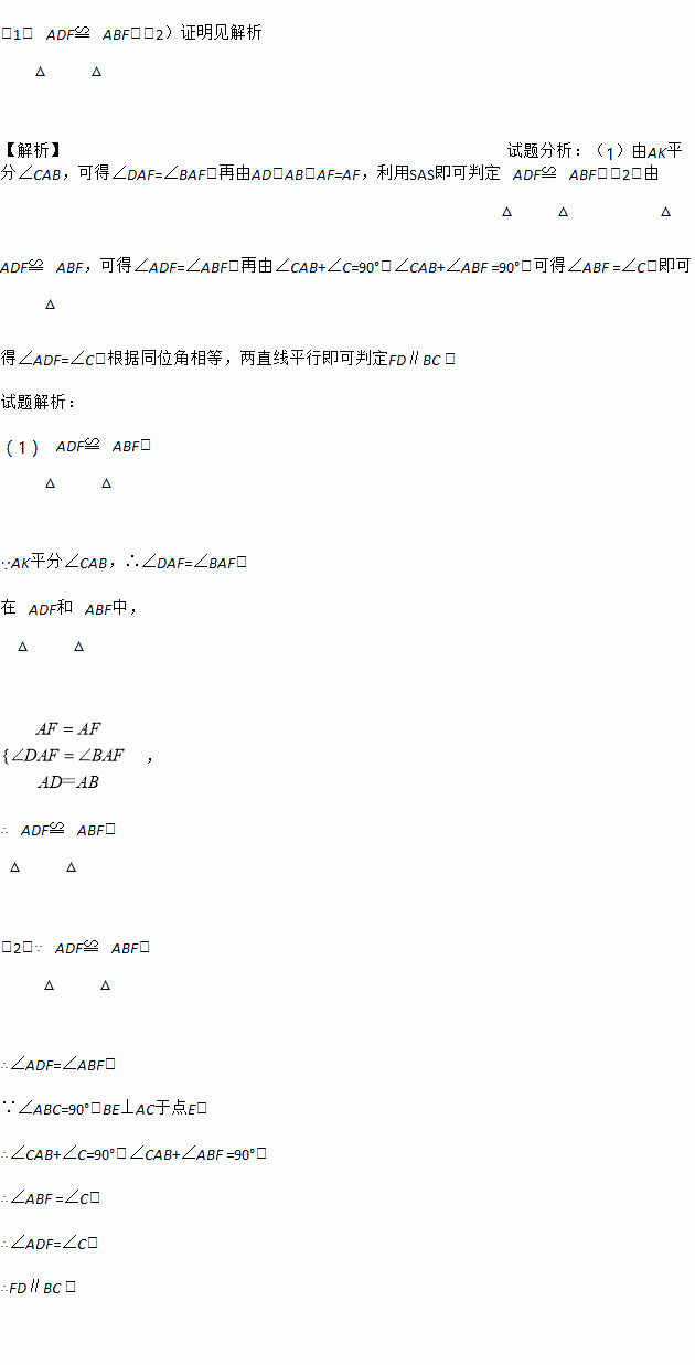 如图,在△ABC中,∠ABC=90°,BE⊥AC于点E,点D在AC上,且AD=AB,AK平分∠CAB,交线段BE于点F,交边CB于点K.