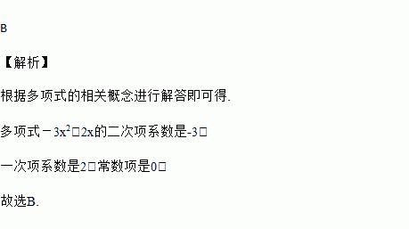 多项式-3x2+2x的二次项系数,一次项系数和常数项分别为( )