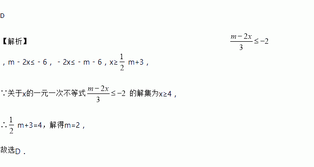关于x的一元一次不等式≤–2的解集为x≥4,则m的值为( )