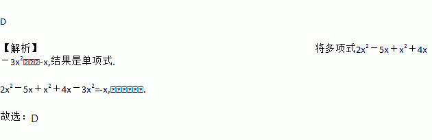 将多项式2x2-5x+x2+4x-3x2合并同类项后所得的结果是( )