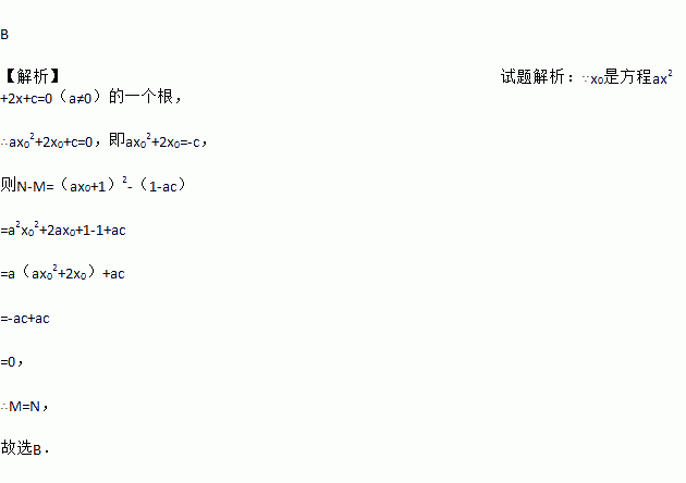 若x0是方程ax2+2x+c=0(a≠0)的一个根,设M=1-ac,N=(ax0+1)2,则M与N的大小关系正确的为( )