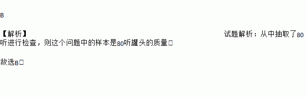 为了检查一批罐头的质量,从中抽取了80听进行检查,则这个问题中的样本是( )