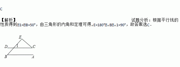 如图,直线AB∥ CD,∠ B=50°,∠ C=40°,则∠E等于( )