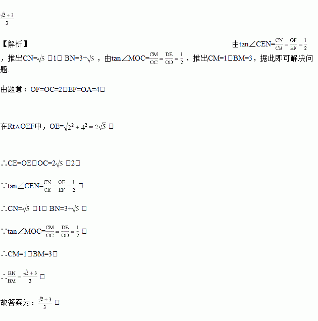 如图,在平面直角坐标系中,矩形OABC的顶点A,C的坐标分别为(0,4),(2,0),将矩形OABC绕点O按顺时针方向旋转到矩形ODEF,顶点E恰好落在x轴的正半轴上.设线段OD,EF分别交直线BC于点M、N,则