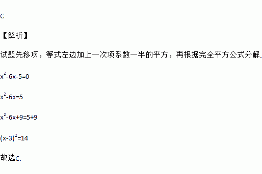 方程x2-6x-5=0左边配成一个完全平方式后,所得的方程是( )