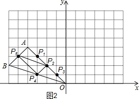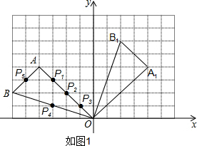 (2)点P1,P2,P3,P4,P5是△AOB边上的5个格点,画一个三角形,使它的三个顶点为P1,P2,P3,P4,P5中的3个格点并且与△AOB相似.(要求:在图中联结相应线段,不用说明理由)