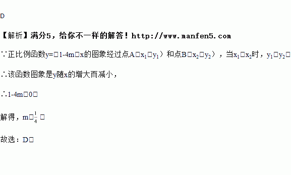 若正比例函数y=(1-2m)x的图象经过点A(x1,y1)和点B(x2,y2),当x1<x2时,y1>y2,则m的取值范围是( )