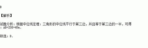 如图,要测定被池塘隔开的两点的距离.可以在外选一点,连接,并分别找出它们的中点, 连接D.现测得,则( )