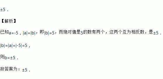 已知a=-5 , |a|=|b|,则b的值为_______.