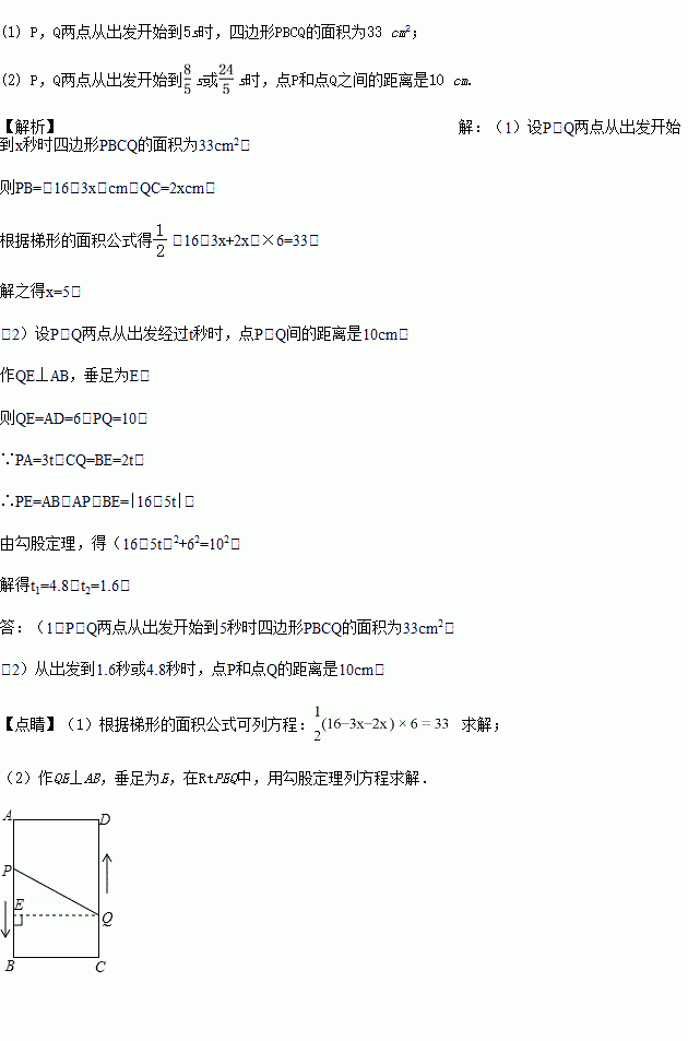 (1)P,Q两点从出发开始到几秒时,四边形PBCQ的面积为33 cm2?