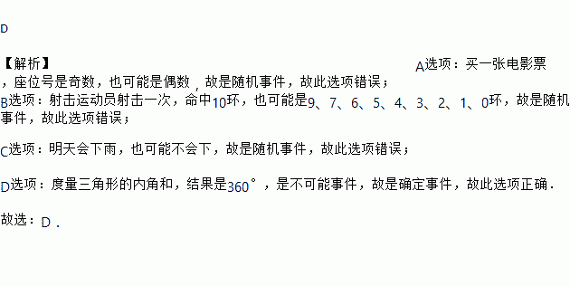 A. 买一张电影票,座位号是奇数 B. 射击运动员射击一次,命中10环