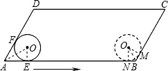 如图,在?ABCD中,∠DAB=60°,AB=15cm.已知⊙O的半径等于3cm,AB,AD分别与⊙O相切于点E,F.⊙O在?ABCD内沿AB方向滚动,与BC边相切时运动停止.试求⊙O滚过的路程?