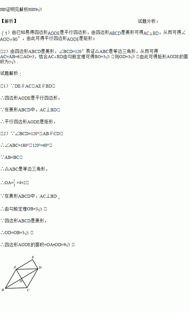 (Ⅱ)若AB=6,∠BCD=120°,求四边形AODE的面积.